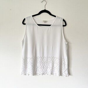 Style Envy White Sleeveless Top With Eyelet Lace Hem Size XL 100% Rayon