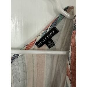 Style Envy women’s Flowy Stripped VNeck Top Blouse Belted Waist Size M