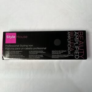 Style House 1.25 Inch Professional Styling Iron Beauty Amplified Black. Negative Ion Therapy. Ultra Smooth Plates. Item 1656737. Aluminum ceramic coated plates and infrared quick heat technology help protect your hair at the root and lock in moisture. Box may be dented but contents are fine.