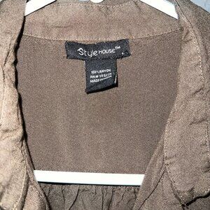 Style House Brown Button Front Short Sleeve Blouse – Collared Rayon Shirt – Boxy