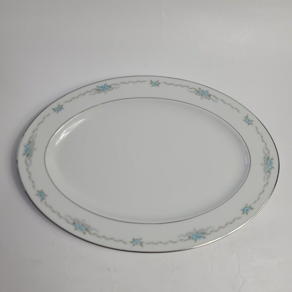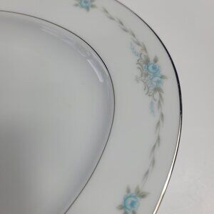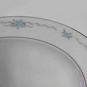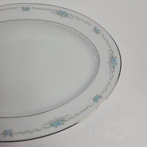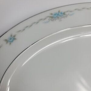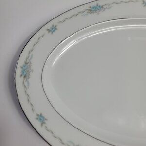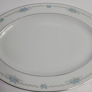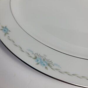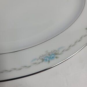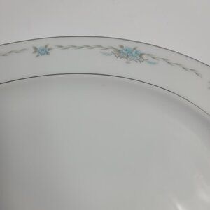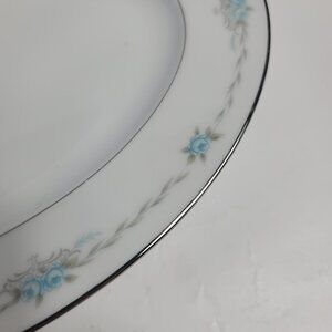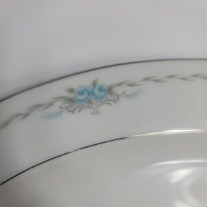 For sale is a ONE (1) Style House Corsage 12 Inch Oval Serving Platter. The platter is white blue roses and gray vines. The platter is in good used condition with no chips, cracks or crazing. I have other pieces from this pattern.