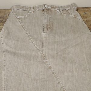 Style J Denim Skirt Sz 32 XL Western Casual A Line Brown Modest Long. Skirt is about 37" long from top to bottom. Normal wear including minor wash wear. One spot of fading (photo). Smoke free home. Please see photos.