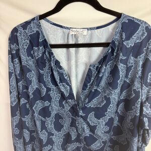 Style List by Micaela Women's Top Size 2X Blue Print Long Sleeves *flaw
