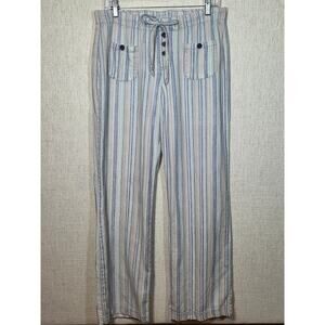Style Me Blue Striped Linen Blend Pants Women’s 8 Wide Leg Coastal Grandma