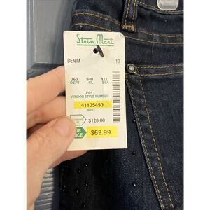 Style New York Womens 10 Black Lace Beaded Hem Dark Wash Blue Denim Jeans
