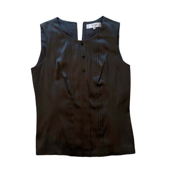 Elegant and versatile, this Style Paris blouse is crafted in France from luxurious silk. Featuring a sleek sleeveless silhouette with pleated front detailing and a subtle V-notch neckline, it offers refined sophistication for both professional and evening wear. A polished piece that adds instant elegance to any wardrobe.