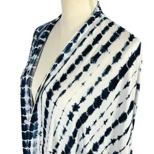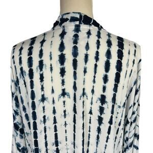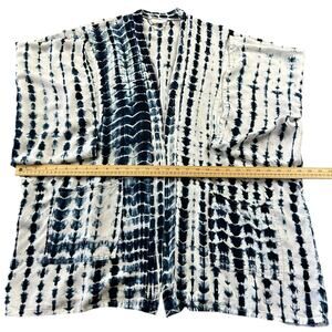 Details: Indigo Blue/White Tie Dye Kimono with pockets. Relaxed Open Front with Single Button Closure, Kimono Sleeves, Pockets, Belt Loops, and Tie-Dye Pattern. Soft and Breathable