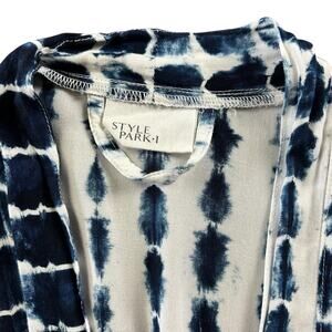 Style Park 1 Kimono One Size Blue White Pockets Single Button Closure Cover Up
