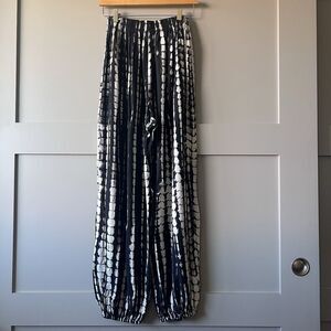 Style Park 1 Women Tie Dye Harem Style Jogger Pants One Size Boho Wide Leg Black Cream Beach Hippie