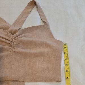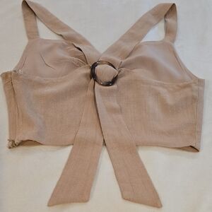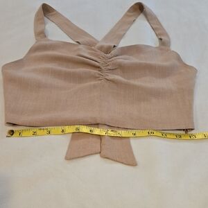 Elegant beige crop top with ruched detail. Perfect for layering or standalone style. Bin #7
