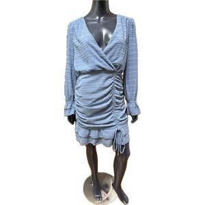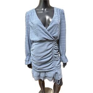 Style Rack Mini Blue Dress Ruched Size Medium Long Sleeve V Neck