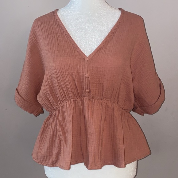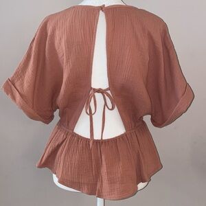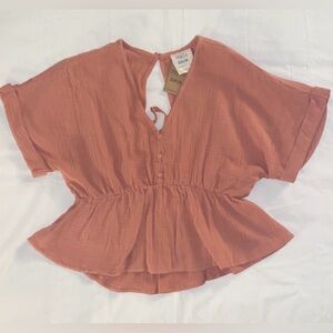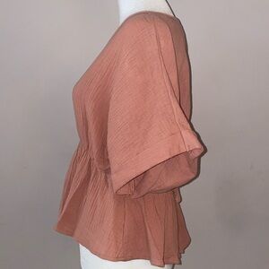 NWT Style Rack Short Sleeve Open Back Blouse in a medium tone pink color.