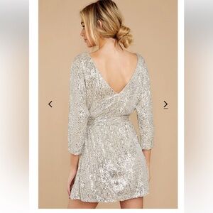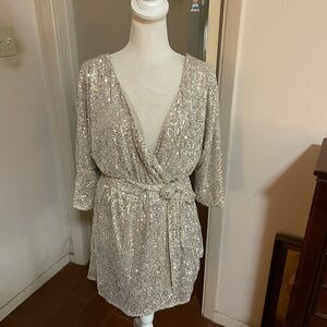 Style Rack Silver Sequin Cocktail mini Dress size Large quarter sleeve stretch