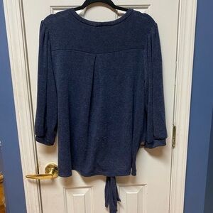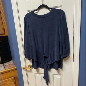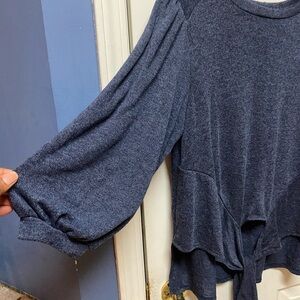 Style Rack Women Blue Pull High Low Crop Waist Tie Bishop Sleeves Sweater L.