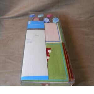 Style Selections Christmas Shower Curtain w/Snowflake Hooks Pink. Blue, Green. Get your bathroom ready for Christmas with this festive Patchwork Christmas Tree Shower Curtain with matching Snowflake hooks set. Still in original packaging--never used. Fabric shower curtain (no liner included) measures 72" X 72" and there are 12 hooks. Please see pictures.