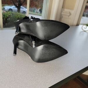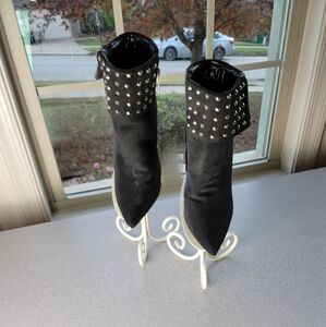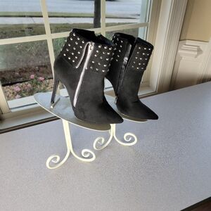 Style shoes studded faux suede stiletto ankle bootie, pointed toe, inside zip closure, 4.5" heel, previously owned, excellent condition