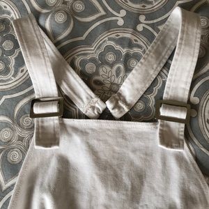 Super short short overalls. White denim. Adjustable straps. 2 side buttons. No pockets. Runs a tad big. Fits loose yet contours body