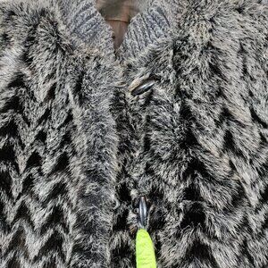 Style VI Faux Fur Vest Womens XL Black Gray Chevron Pattern Toggle Button