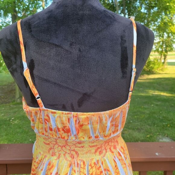 Style Works Orange White Floral Feather Spaghetti Strap Summer Dress Size M