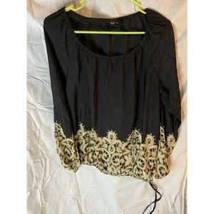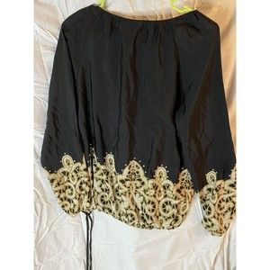 Style and Co Black Banded Bottom Peasant Blouse Top Shirt with rhinestone accents. Elastic at hem, sleeves and neck for small amount of shirring. No stains or rips.