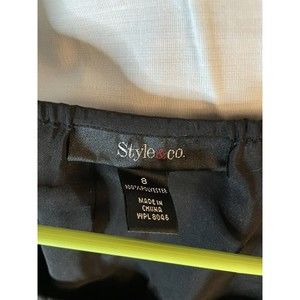 Style and Co Black Banded Bottom Peasant Blouse Top Shirt Size M