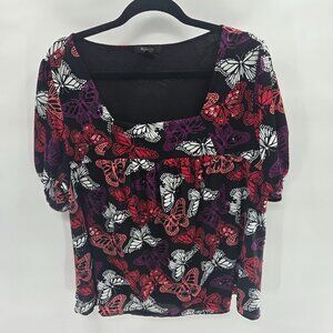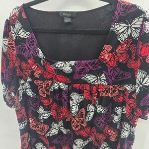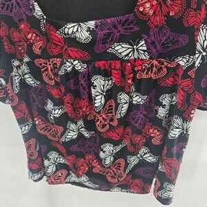 Style and Co Black Butterfly Square Neck Blouse Size 2x