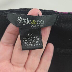 Style and Co Black Butterfly Nylon Square Neck Beaded Blouse Size 2x