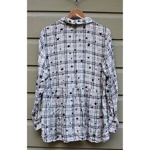 Style and Co - Celestial Plaid (Stars Print) Smock Top - Rayon Flannel, 1X Plus