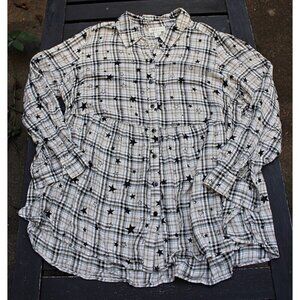 Style and Co - Celestial Plaid (Stars Print) Smock Top - Rayon Flannel, 1X Plus