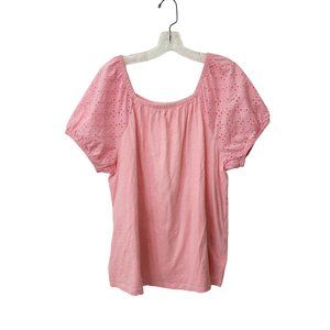 Style and Co Pink Jersey Peasant Blouse with Eyelet Sleeves PXXL