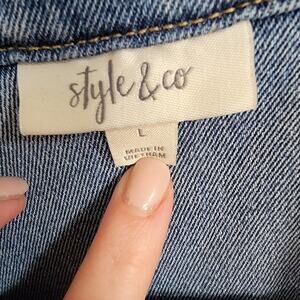 Style and Co Women's Denim Jacket Light Wash Classic Button Up Size large NWOT