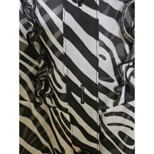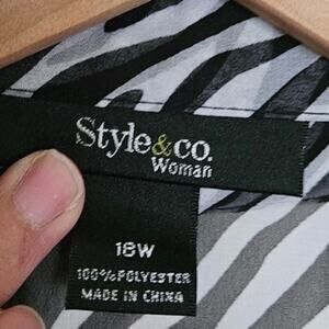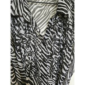 Style and Co. Women's Sheer Button Down Belted Blouse 18W Plus Zebra Print. Ruffles front. Flowy. 1 button missing otherwise excellent condition see photos for details and measurements animal print