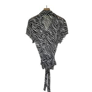 Style and Co. Women's Sheer Button Down Belted Blouse 18W Plus Zebra Print