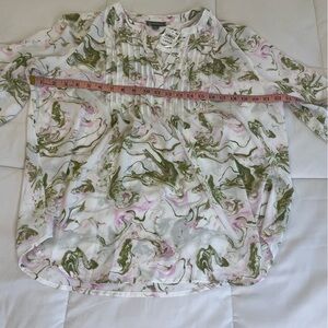 Style and Company Size Large Floral Bell Sleeve Pin tuck Blouse