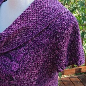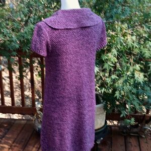 Beautiful sweater dress in merlot. Rolled collar with retro button. Two front pockets with buttons. Ribbed cap sleeves. Size 6 measures 36 at chest, 38 at waist, 44 at hips. 33.5 long from shoulder to ribbed hem. Cute and cozy, imagine with boots.
