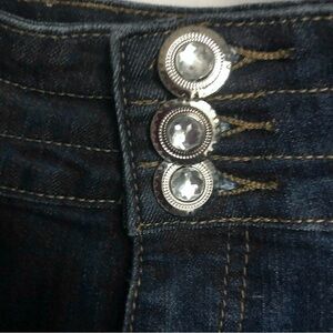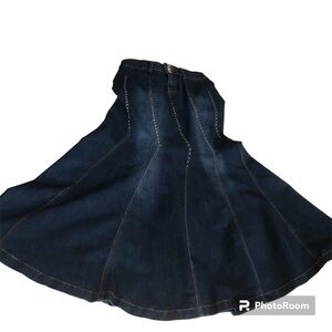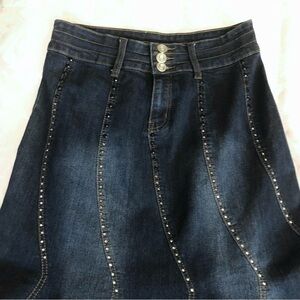 Style by Cache Vtg Stretch Denim Rhinestone Studs Deep Blue Flare Maxi Skirt 6