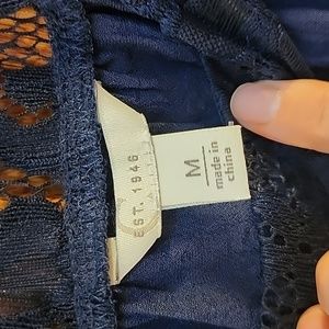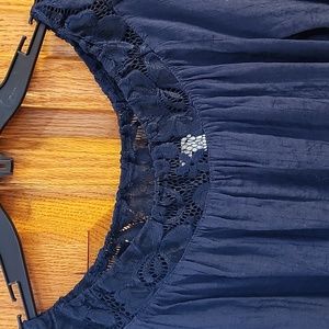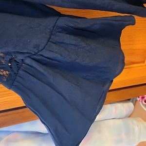 your inner fashionista called and said this is perfect! lace down the arms to a bell sleeve, lace around the neck line and a rounded bottom. very flowy and stylish. Never worn but no tags.