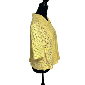 Style & co. 16P yellow eyelet linen short sleeve peplum jacket