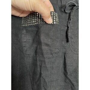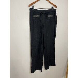Style co Women's Medium Black Linen Elastic Waist Pants Rhinestone Pockets