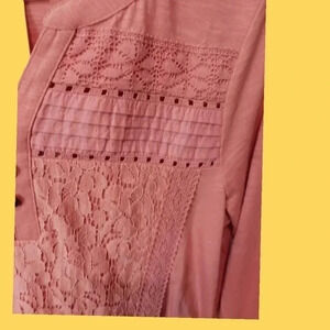 Style & co lace front henley top created lace trim blouson sleeves petite top feminine flair size ps.color light orange from smoke and pet free home.