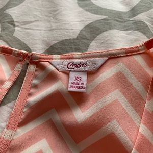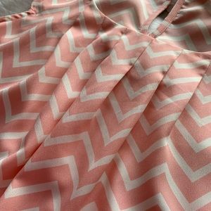 Perfect for a business casual look or even pair with a pair jeans. 100% polyester. Rounded bottom with button in the back. Adorable pleated front with cap sleeves.