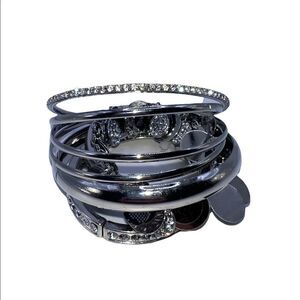 Style & Co 7 Piece Set Crystal & Printed Insert Bangle Bracelets Silver Tone NWT