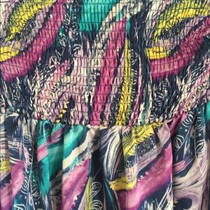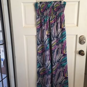 Maxi dress with an adjustable and removable straps. Stretchable top and flowy bottom. Turquoise, purple, pink, black, white color. One time used.