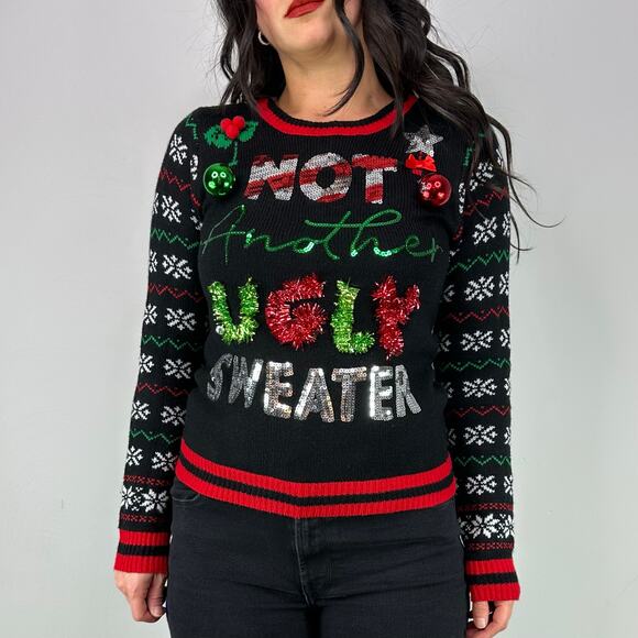 Style&Co "Not Another Ugly Sweater" Christmas Garland Sequin Sweater. Great gently used condition. Foam Christmas ornaments - one has a little bit of the red rubbed off. Knit. Crew neck.
