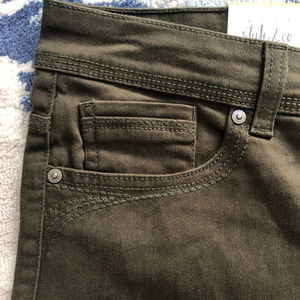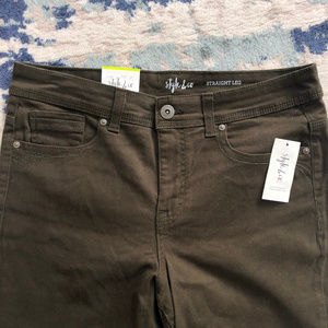 Style&Co Rail Straight Leg Embroidered Olive Jeans