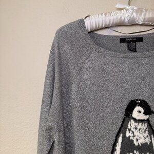 Style&Co Silver Sparkle Sequined Penguin Square Neck Knit Sweater Women's M