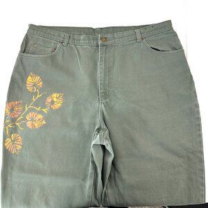 Style&Co Striaght Women's size 20W Custom Painted Leaves Branch Green Jeans