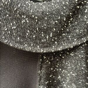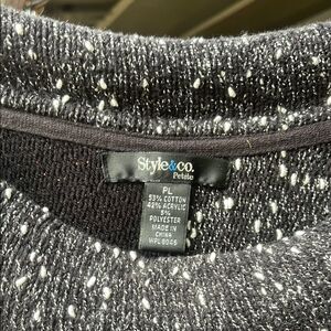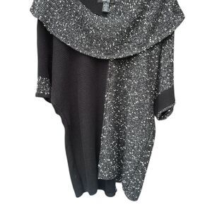 Chic knit poncho with a speckled design. Features a blend of black and gray colors. Perfect for layering.