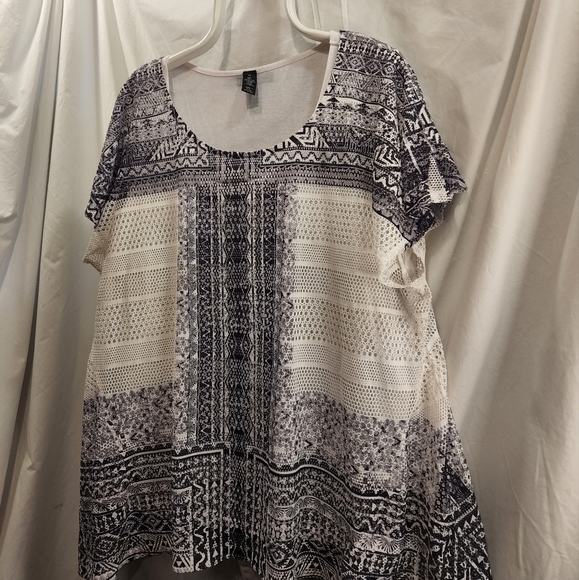 Style&Co. Eyelet lace with Hombre details. Black,gray and white with crew neck and short butterfly sleeve. Attached under shirt. Add a great pair of gray Capri pants a NINE West satchel and Bernie Mev shoes outfit complete!!! bundle and save $$