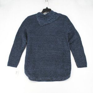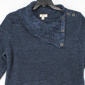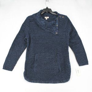 New Style&Co Women Plus Envelope Collar With Button Trim Pullover Sweater Indigo